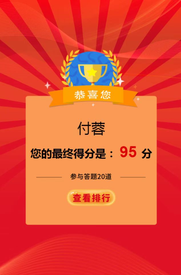 該競賽是以“傳承紅色基因 守牢紀(jì)法底線”為主題,通過線上學(xué)習(xí),線上答題的形式,以考促學(xué),以考驗效,營造了學(xué)習(xí)“四史”的濃厚氛圍,重點教育黨員干部深刻認(rèn)識“兩個確立”的決定性意義,增強(qiáng)“四個意識”、堅定“四個自信”、做到“兩個維護(hù)”。同時,把答題活動作為加強(qiáng)黨員干部紀(jì)法教育的重要載體進(jìn)行落實,激發(fā)黨員干部學(xué)習(xí)紀(jì)法知識的積極性、主動性,牢固樹立紀(jì)法意識,自覺嚴(yán)守紀(jì)律規(guī)矩、不逾紀(jì)法底線,廉潔從政從業(yè)、規(guī)范行權(quán)用權(quán)。